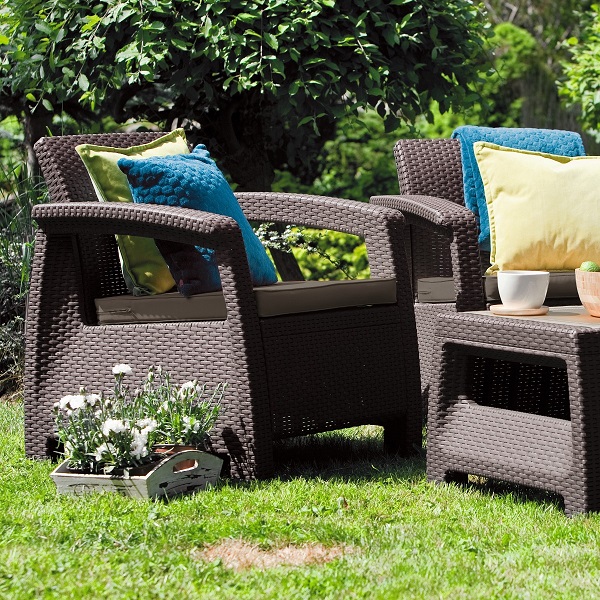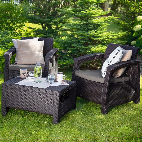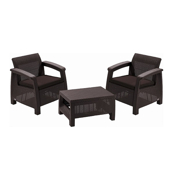 Комплект садовой мебели keter corfu ii weekend set brown. Комплект садовой мебели Corfu II Weekend Set brown станет уютным уголком отдыха на загородном участке. Стильные изделия с имитацией плетения под ротанг – отличное решение при обустройстве сада. Компактный и легкий сет можно разместить в любом уголке участка и при желании быстро переместить в другое место. А благодаря прочному и устойчивому к высоким температурам материалу, изделия надолго сохранят свой насыщенный цвет. Также при желании можно с легкостью собрать сет на свой вкус, дополнив его любой единицей мебели линейки Corfu, например, диванами Corfu II Love Seat и Corfu II Love Seat Max, или парой кресел Corfu II Duo. • Размер кресел: 75х70х79 см х 2 шт. • Размер стола: 77х57х42 см • Вес нетто: 20 кг • Материал: полипропилен имитирующий плетение под ротанг • Цвет: коричневый • Размер упаковки: 120х80х42 см • Вес брутто: 25,4 кг • Производитель: Keter • Страна: Россия