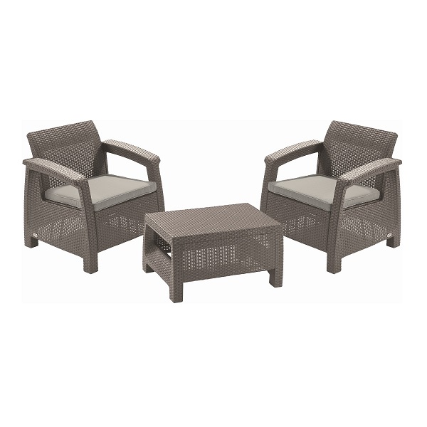 Комплект садовой мебели keter corfu ii weekend set cappuccino. Комплект садовой мебели Corfu II Weekend Set capuccino станет уютным уголком отдыха на загородном участке. Стильные изделия с имитацией плетения под ротанг – отличное решение при обустройстве сада. Компактный и легкий сет можно разместить в любом уголке участка и при желании быстро переместить в другое место. А благодаря прочному и устойчивому к высоким температурам материалу, изделия надолго сохранят свой насыщенный цвет. Также при желании можно с легкостью собрать сет на свой вкус, дополнив его любой единицей мебели линейки Corfu, например, диванами Corfu II Love Seat и Corfu II Love Seat Max, или парой кресел Corfu II Duo. • Размер кресел: 75х70х79 см х 2 шт. • Размер стола: 77х57х42 см • Вес нетто: 20 кг • Материал: полипропилен имитирующий плетение под ротанг • Цвет: капучино • Размер упаковки: 120х80х42 см • Вес брутто: 25,4 кг • Производитель: Keter • Страна: Россия