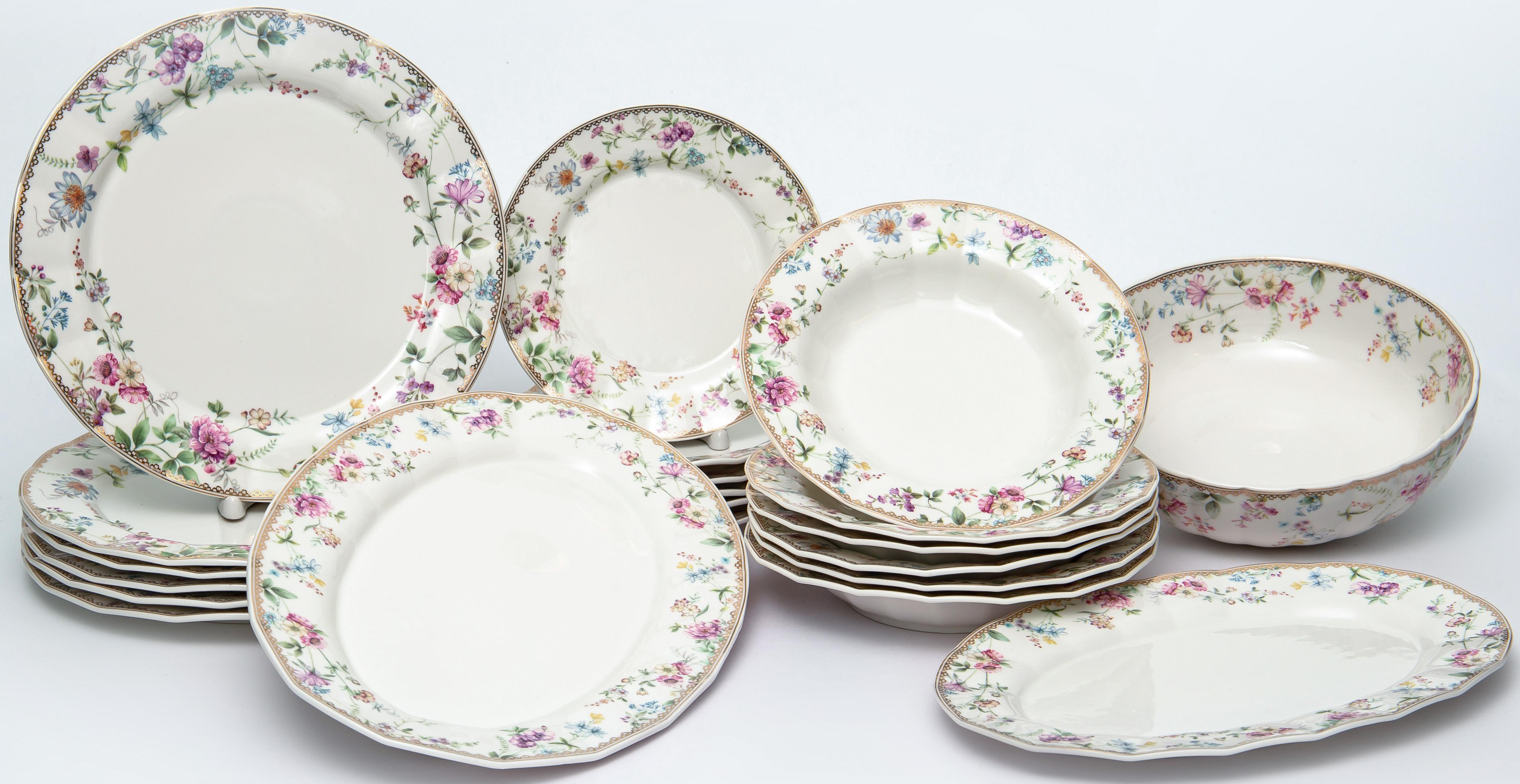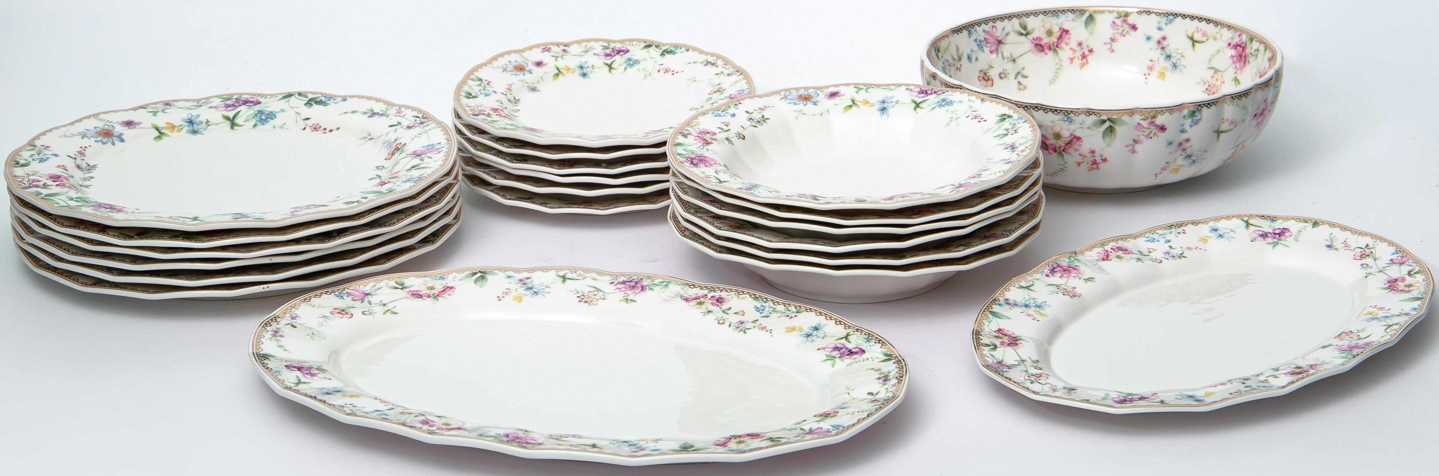 Мелк.тарелок 270мм: 6 шт Глуб.тарелок 210мл 6 шт Мелк.тарелок 190мм 6 шт Салатник 230мл 1 шт Блюдо овальное 305мм 1 шт Блюдо овальное 360мм 1 шт