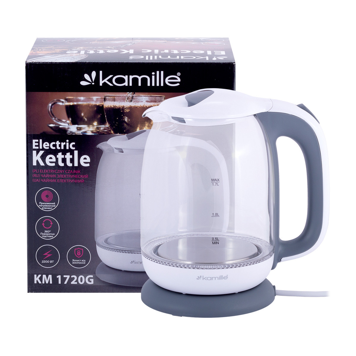 Чайник Kamille 1,7л электрический из боросиликатного стекла Km-1720g