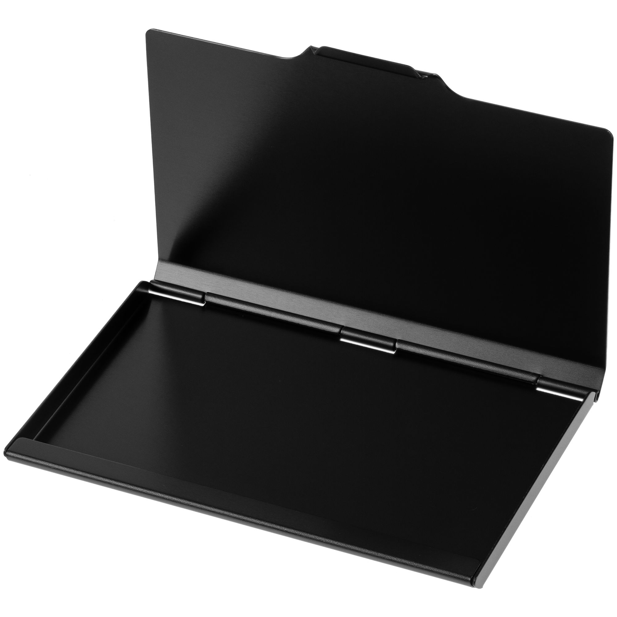 Визитница pocketme, черная. Размеры 9,3х6х0,5 см Материал алюминий Вес (1 шт.) 30,00 г Транспортная упаковка 33,0x67,0x30,0 см Вес 15,00 кг Объем упаковки 0,066 м? Количество в упаковке 500 шт. Виды нанесения A1-Тампопечать LC1-Лазерная гравировка UV-УФ-печать Вмещает 10 визиток.  развернуть описание ▼