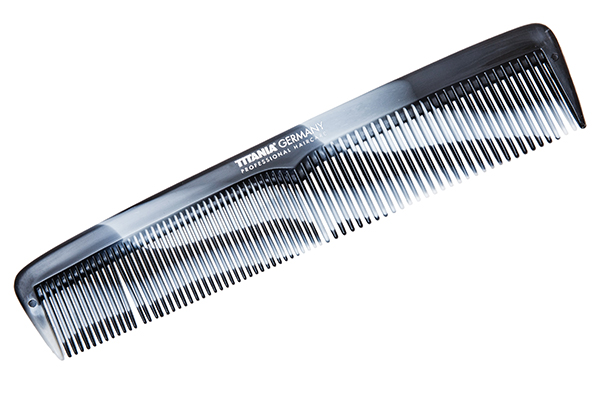 Расчёска 21 см комбинированная серо-белая. Расчёска 21 см с частыми и редкими зубчиками серо-белого цвета. Страна происхождения: Германия Артикул: 1809/4 Бренд: TITANIA Тип расчески: Прямые Длина расчески: 20 - 21 см Материал расчески: Пластик