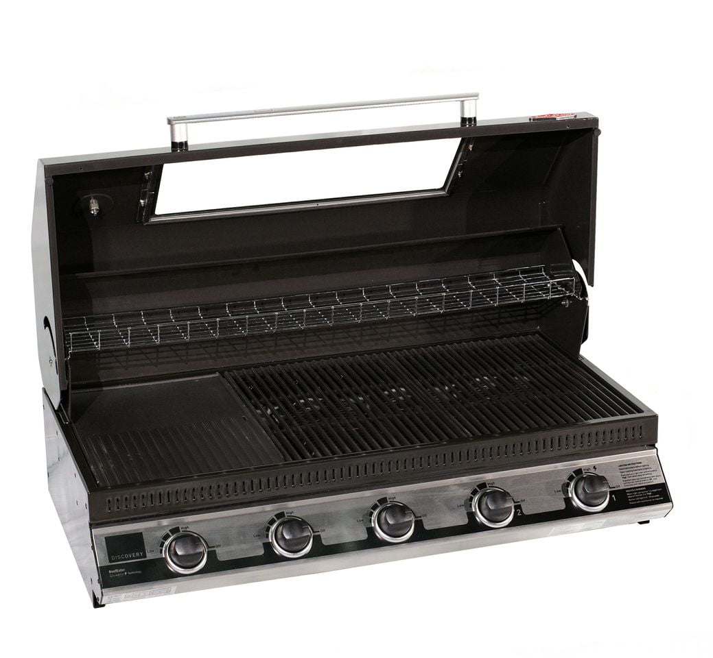 Газовый гриль встраиваемый BeefEater BBQ Discovery 1100e для встраивания с пятью горелками — это замечательная модель, которая подойдет всем поклонникам приготовления на гриле. Корпус гриля выполнен из эмалированной стали, а жарочная поверхность - из высокопрочного чугуна. Уникальные радиационные горелки не только гарантируют отличный нагрев и исключают возникновение вспышек пламени, но и улучшают вкус еды. На крышке предусмотрено стеклянное окошко и встроенный термометр.