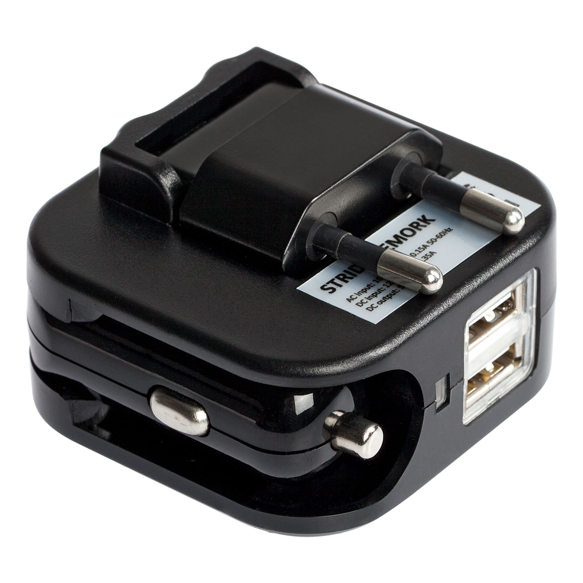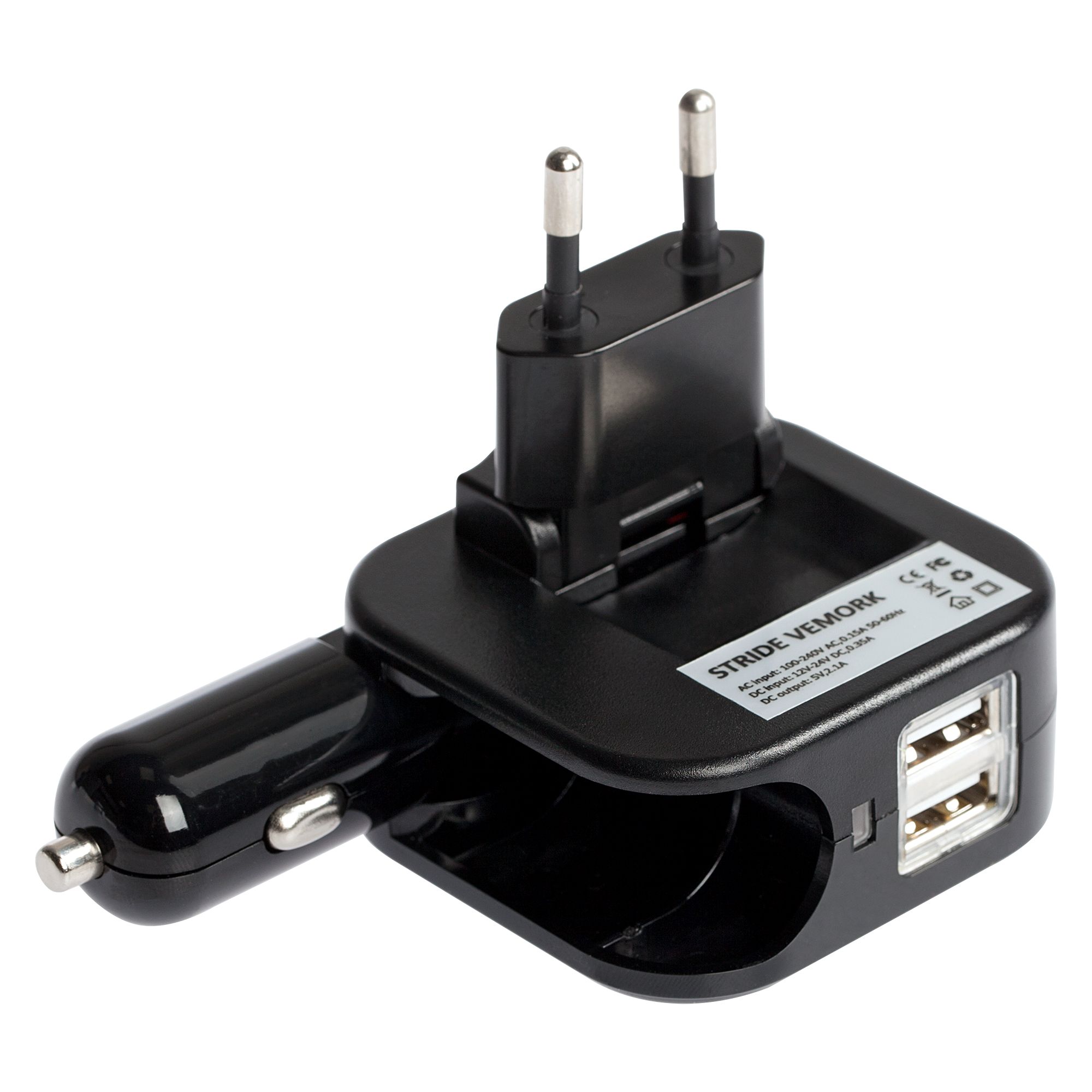 Зарядное устройство vemork, черное. Размеры 5,6x5,8x3,6 см; упаковка: 8,6х14,3х4,2 см Материал пластик Вес (1 шт.) 106 г Транспортная упаковка 23,0x46,0x46,0 см Вес 10,60 кг Объем упаковки 0,049 м? Количество в упаковке 100 шт. Виды нанесения A2-Тампопечать (2 цвета) Универсальное зарядное устройство путешественника. Подходит для планшетов и смартфонов, можно использовать как в автомобиле, так и дома. Входное переменное напряжение: 100–240 В Входной ток от домашней розетки: 0,15 А Входное постоянное напряжение: 12–24 В Входной ток от автомобильной розетки: 0,35 А Выходной ток, суммарный для двух выходов: 2,1 A