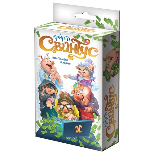 Настольная игра: криптосвинтускриптосвинтус. Что в коробке 80 карт Хрюнкоинов 10 карт экспертов 1 карта тренда «КриптоСвинтус» – веселая карточная настольная игра, являющаяся очередным дополнением к всемирно известному «Свинтусу», который обрел широкую популярность, как появился. Свинтусы решили не отставать от модных трендов, поэтому купили себе по смартфону и начали изучать, что же такое криптовалюта и как с ней обращаться. На помощь в этом вопросе им всегда готовы прийти опытные эксперты. Ход игры В начале партии каждый участник получает на руки некоторое количество карт. Оставшаяся колода кладется в центре игрового стола. Также нужно взять и положить рядом с самой колодой рубашкой вниз особенную карту, задающую тренд. В свой ход игрок выкладывает на стол две карты в стопки, соответствующие текущему цвету. Если он этого не может сделать, он берет из общей колоды две штрафные карты. От классической игры здесь по-прежнему остается действующим правило перехвата, а также классическое: «Свинтус!», которое обязательно нужно воскликнуть в определенный момент.