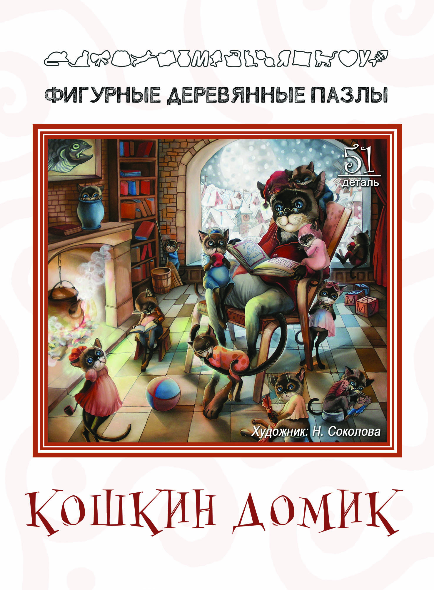 Фигурный деревянный пазл кошкин домик