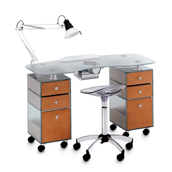 Стол маникюрный 187 lx. Маникюрный стол с двумя тумбами, столешница и тумбы из стекла. Тумбы маникюрного стола оснащены тремя выдвижными ящиками из дерева и колесами для удобства перемещения. В комплекте: лампа, валик маникюрный, подставка под лаки, вытяжка AR3 30W. Цвет ящиков на выбор: - вишня; - венге. Вес: 86,60 кг; Объем: 0,51 м³; Количество мест: 4. Размер (ДхШхВ): 122x53x77 см Стоимость модели, представленной на фото, может отличаться от цены, указанной на сайте. Артикул: 187 LX Бренд: Artecno