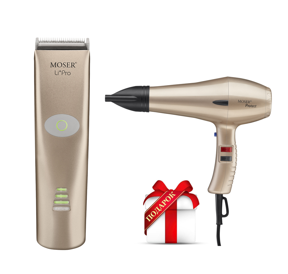 Машинка д/стрижки Lipro аммум./сетевая, 6 нас. розовое золото + фен Moser
