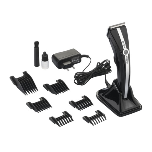 Машинка для стрижки (0,7 - 3 мм) motion ermila 1885-0040. Машинка для стрижки с комбинированным питанием и съемным держателем «кольцо ножниц» Ermila motion 1885-0040. ИННОВАЦИОННАЯ - Инновационный дизайн, съемный держатель «кольцо ножниц»: большая безопасность и неповторимый стиль. ПРОФЕССИОНАЛЬНАЯ - Быстрая зарядка машинки за 45 минут. - До 90 минут автономной работы. - Высокоэффективный и надежный аккумулятор без эффекта памяти. - Универсальный зарядный блок подходит и для триммера Ermila Motion. ИНТЕЛЛЕКТУАЛЬНАЯ - Многоуровневый индикатор состояния заряда аккумулятора: система «светофор», встроенный в кнопку включения. ЭРГОНОМИЧНАЯ - Особо эргономичная форма корпуса. - Малый вес #40 всего 270г #41 . - Тихая работа. - Вес: 270 г. - Размеры: 192 х 48 х 57 мм. НОЖЕВОЙ БЛОК MAGIC BLADE II Новый высококачественный профессиональный ножевой блок “Made in Germany” со встроенным регулятором высоты среза от 0,7 до 3мм и функцией быстрой замены. Закрытая внутренняя часть блока оптимизирует сход срезанных волос и упрощает уход. В КОМПЛЕКТЕ - 6 пластиковых насадок #40 3, 6, 9, 12, 18, 25мм #41 . - Зарядная подставка. -Энергосберегающий сетевой адаптер. - Держатель «кольцо ножниц». - Щеточка для очищения. - Масло для смазки ножевого блока. Цвет: чёрный с серебром. Аккумулятор Литий-ионный (Li-Ion) Тип Машинка для стрижки Вес 270 гр Дисплей Нет Высота насадки 3, 6, 9,12, 18, 25 мм Высота среза 0,7 мм Материал ножа Металл Насадки 6 шт Питание Аккумуляторно-сетевая Регулировка высоты среза От 0,7 до 3 мм Съемные ножи 1 шт Ширина ножа 46 Время работы от аккумулятора 90 мин Количество оборотов в минуту 5200 Прочие особенности Быстрая зарядка за 45 ми нут Цвет Серебристый