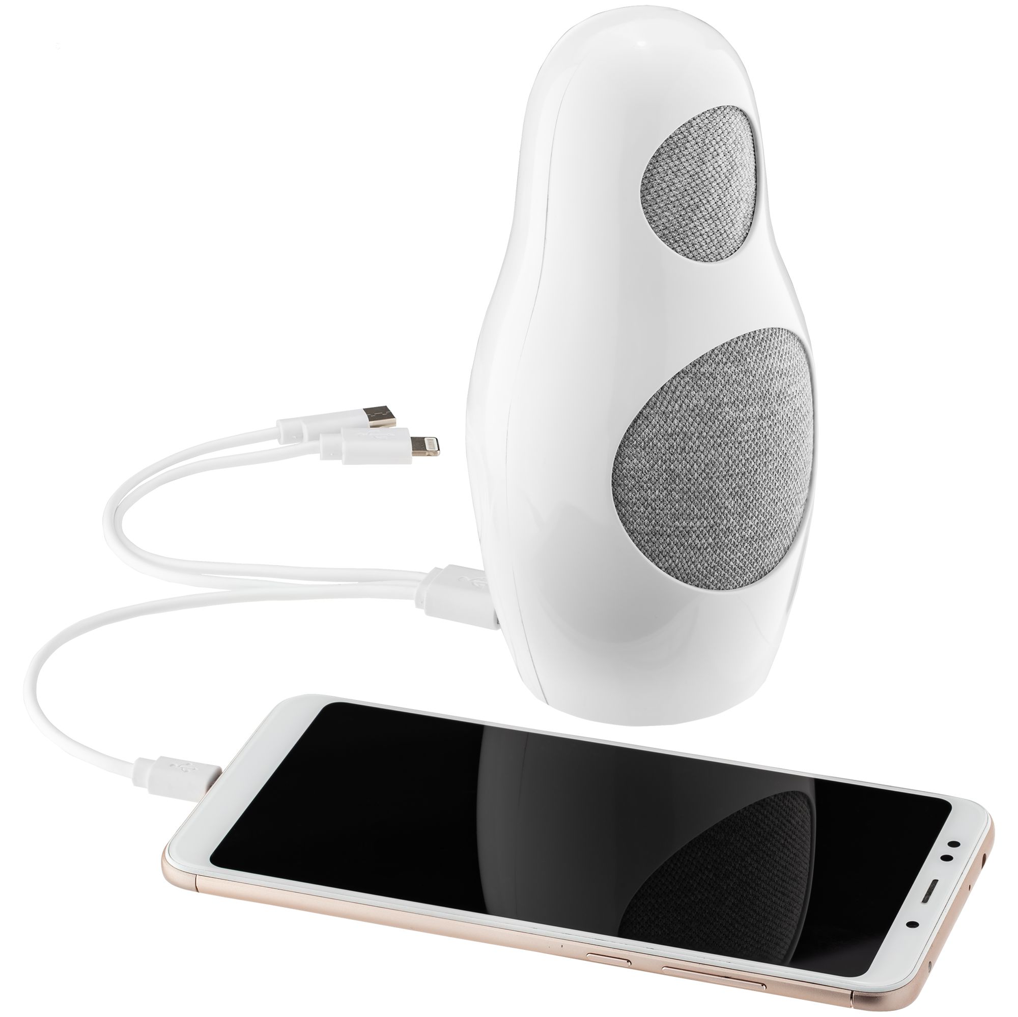 Беспроводная колонка repeat с аккумулятором 4000 мач, белая. Размеры 8х8х15,5 см; упаковка: 8,3х8,3х16 см Материал пластик Вес (1 шт.) 288 г Транспортная упаковка 44,0x36,0x36,0 см Вес 11,50 кг Объем упаковки 0,057 м? Количество в упаковке 40 шт. Виды нанесения A2-Тампопечать (1 цвет) UV-УФ-печать Беспроводная колонка Repeat — тот самый случай, когда внешний вид ни в чем не уступает функциональности. Колонка-аккумулятор с футуристичным дизайном, в котором легко угадываются черты матрешки, — специальная разработка «Проекта 111». Repeat станет стильным бизнес-подарком, который приятно удивит и надолго запомнится. Если ваш смартфон разрядился во время увлеченного прослушивания музыки, никакие дополнительные устройства не понадобятся. Подключите гаджет к колонке: она также может служить внешним аккумулятором. Идея и дизайн: Алексей Чугунников. Исключительное право: ООО «». Просто поставьте на Repeat. Выходная мощность: 3 Вт Версия Bluetooth: 4.2 Диапазон воспроизводимых частот: 100 Гц — 16 кГц Микрофон для громкой связи Емкость аккумулятора: 4000 мАч Входной ток: 1000 мА Выходной ток: 1000 мА Время работы в качестве колонки при средней громкости: до 12 часов Время заряда: до 5 часов Количество циклов заряда/разряда: до 700 Кабель с разъемами Type-C, Micro USB, iPhone 5/6/7/8/X/XS в комплекте При проверке нескольких одинаковых беспроводных устройств (колонок, наушников и проч.) от одного телефона необходимо каждый раз удалять предыдущее сопряженное устройство из списка перед проверкой следующего экземпляра. В противном случае новое устройство просто не будет распознано и не сможет функционировать. Чтобы удалить устройство из списка на смартфоне, тапните по значку (стрелочка, кружок и т.п.) в конце строки с именем (например, Stride) и выберите в меню «Отменить сопряжение» или «Забыть устройство». После этого можно подключать к телефону следующий проверяемый экземпляр.