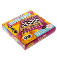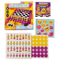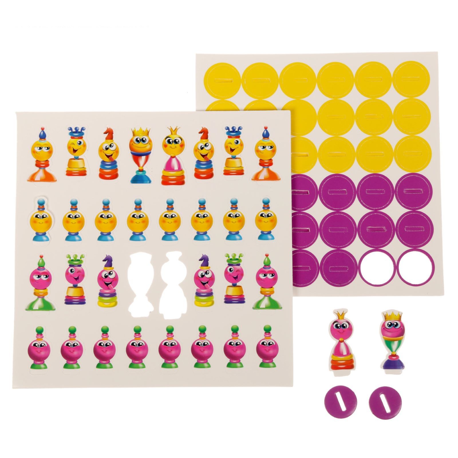 Шахматы детские веселые смайлы. Шахматы — увлекательная логическая игра с яркими фигурами. Она пробудит у ребёнка интерес и поможет приобщить его к полезному занятию. Выдавите героев и подставки из листов и соедините их вместе. Получившиеся фигурки будут твёрдо стоять на доске, а после игры не займут много места. В набор также входит понятная инструкция и наклейки, которыми малыш украсит свои вещи. Специалисты рекомендуют учить детей игре с ранних лет, потому что шахматы: развивают аналитические способности; тренируют память; формируют стратегическое мышление; вырабатывают волю и характер; развивают целеустремлённость. Проводите свободное время с пользой — играйте в шахматы всей семьёй! Размер: 21 см х 21 см х 4 см Вес, гр: 125 Материал: EVA, бумага Материал: EVA Материал: Бумага Вид: Шахматы Особенности: Детские Склад: КИУ 1  развернуть описание ▼
