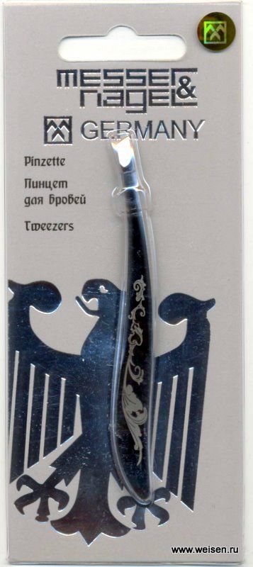 Пинцет mn-7701 bp with ornament (50/400). Бренд: Messer & Nagel Длина: 9 см Материал (состав): Нержавеющая сталь Назначение: Для удаления волос Покрытие: Хром (Блестящее) Заточка: Заводская, механическая Рабочая часть (губки): Скошенные