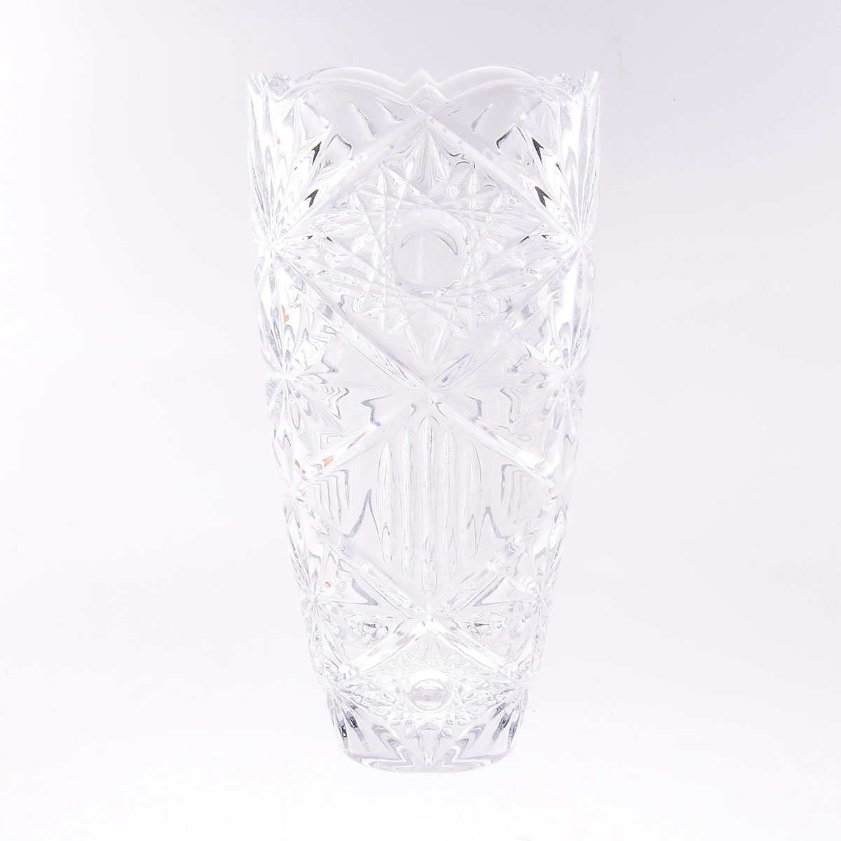 Ваза crystalite bohemia miranda 25 см. Ваза Crystalite Bohemia Miranda 25 см Ваза с такой шикарной гравировкой в виде лучей и звезд – это именно то что нужно для самых торжественных моментов: оформления свадеб, дней рождения и других памятных мероприятий. Придает оригинальность и нарядность изделию фигурная окантовка чаши в тон общему дизайну и стилю представленной коллекции. Нежная и грациозная, торжественная и насыщенная – ваза Miranda прекрасно оттенит всю прелесть поставленного в нее букета. Тип товара Вазы для цветов (Чехия, Стекло, Crystalite Bohemia) Страна происхождения Чехия Материал Стекло Бренд Crystalite Bohemia Серия Miranda Назначение Предмет домашнего обихода из стекла