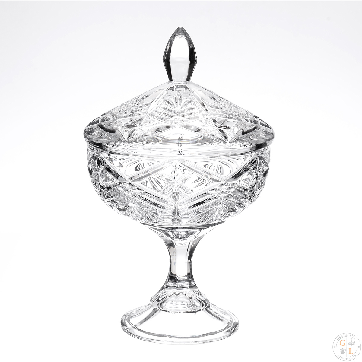 Конфетница на ножке с крышкой crystalite bohemia taurus 24 см. Конфетница на ножке с крышкой Crystalite Bohemia Taurus 24 см Конфетница-бомбоньерка с крышкой, которая снабжена удобной ручкой. Шедевр, который просто обязан красить вашу кухню и застолье. В ней не только можно красиво подать сладости, но еще и хранить их, не беспокоясь о сохранности содержимого. А если поместить в конфетницу наполнители разных цветов типа драже или карамельных подушечек, то и декор изделия будет меняться. Crystalite Bohemia – блестящая современность с многолетней историей. Тип товара Конфетницы (Чехия, Стекло, Crystalite Bohemia) Страна происхождения Чехия Материал Стекло Бренд Crystalite Bohemia Серия Taurus Назначение Предмет домашнего обихода из стекла