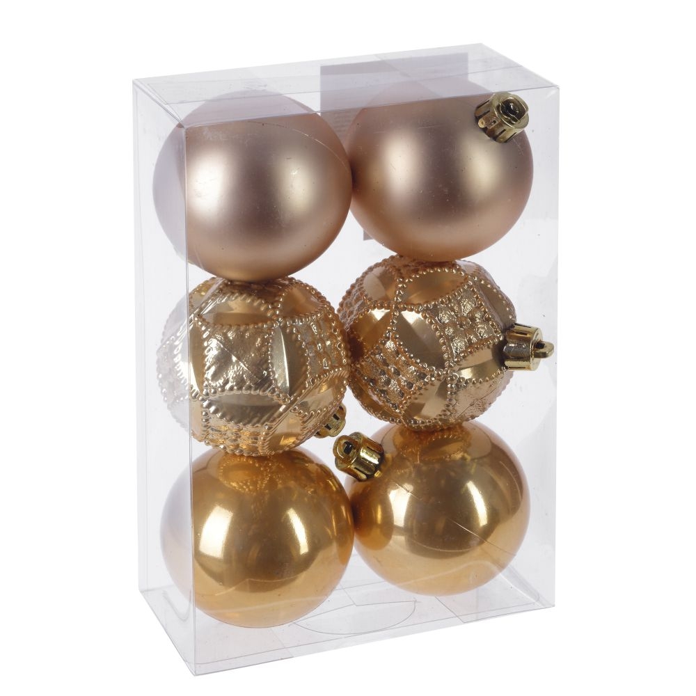 Набор из 6шт украшение новогоднее шар золотистый жемчуг, D6 см, L12 W6 H17,5 см