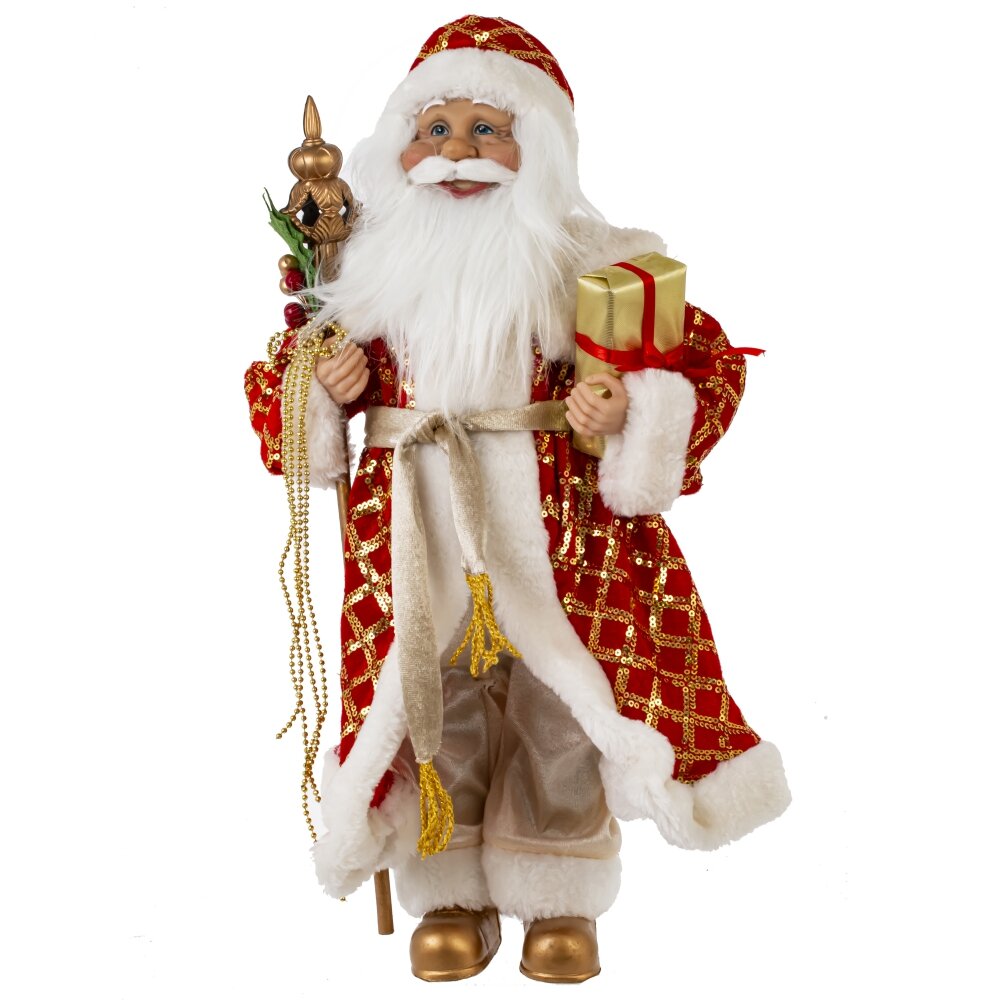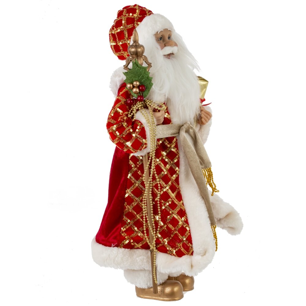 Дед мороз, l22 w13 h45,5 см. Материал: Полимерные материалы/Текстиль Новый год - это праздник, когда каждый ждёт подарков от Деда Мороза, и наверняка многие ставят рядом с украшенной ёлкой фигурку доброго дедушки с мешком подарков и посохом. Порадуйте своих друзей и близких в этот праздник Дедом Морозом в красной, расшитой узорами шубке и меховой шапке. Вес, кг: 0. 663