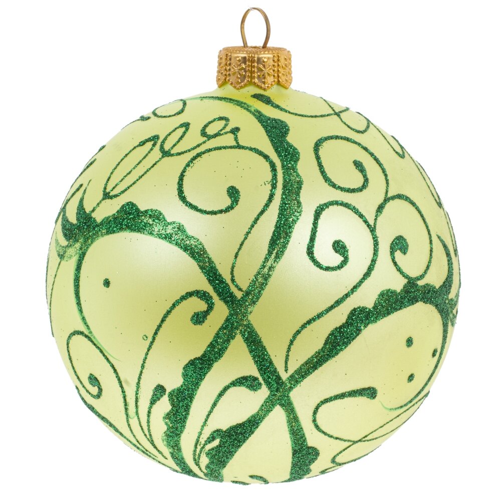 Украшение новогоднее шар хаос, l10 w10 h11см. Материал: Стекло Шар выполнен из стекла и покорит сердца любителей эффекта «морозный узор». Игрушка нежно-зеленого цвета украшена узором, словно нарисованным на окне самой природой. Он отлично украсит елку синего, белого и классического зеленого цветов. Украшение ручной работы. Погрешность в диаметре +- 3мм. Вес, кг: 0. 02
