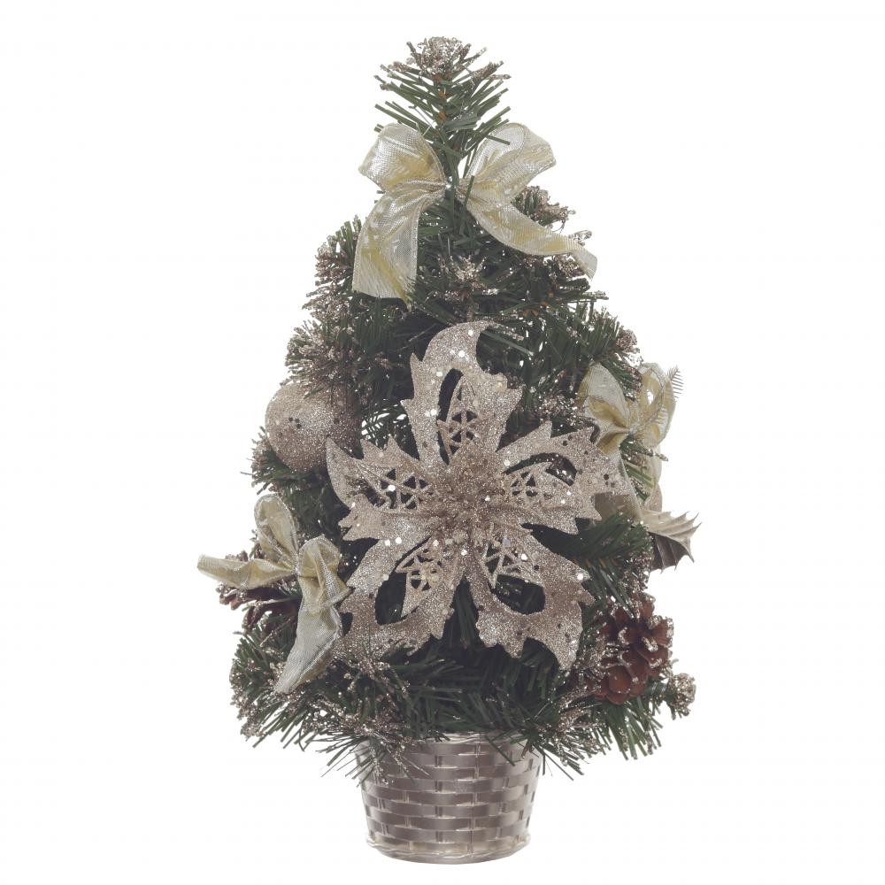 Елка искусственная в устойчивом кашпо. Украшена игрушками цветами и бантами. Елка не требует сборки. Просто распушите ветки и лесная красавица украсит ваш интерьер к празднику.