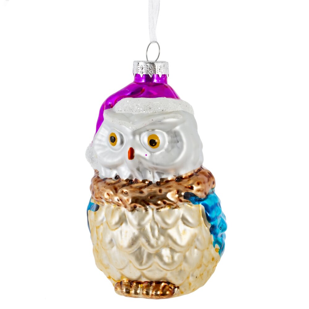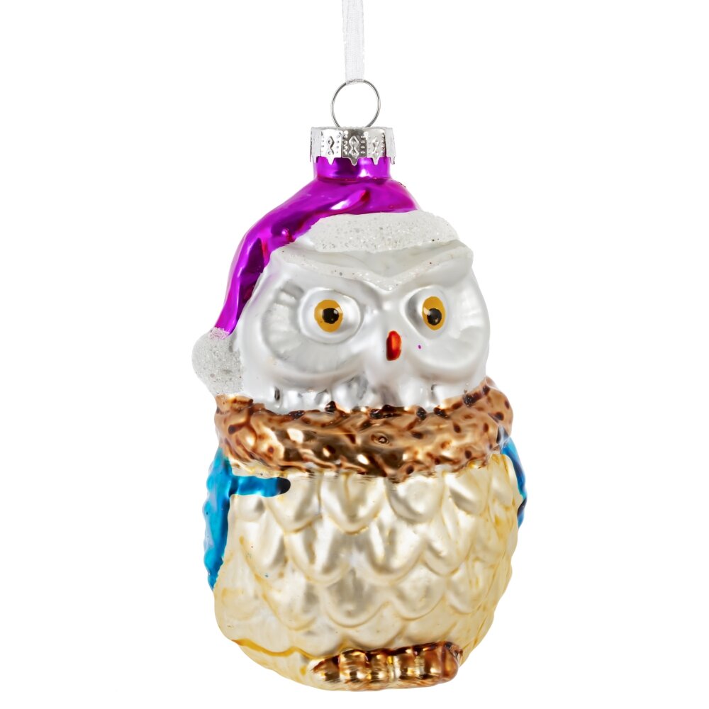 Украшение новогоднее сова, L7 W7 H12,5 см