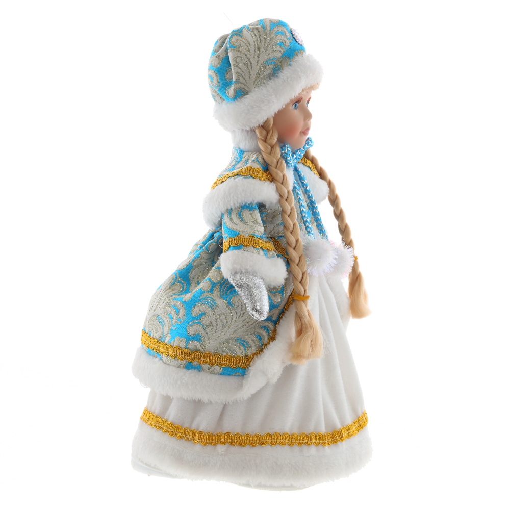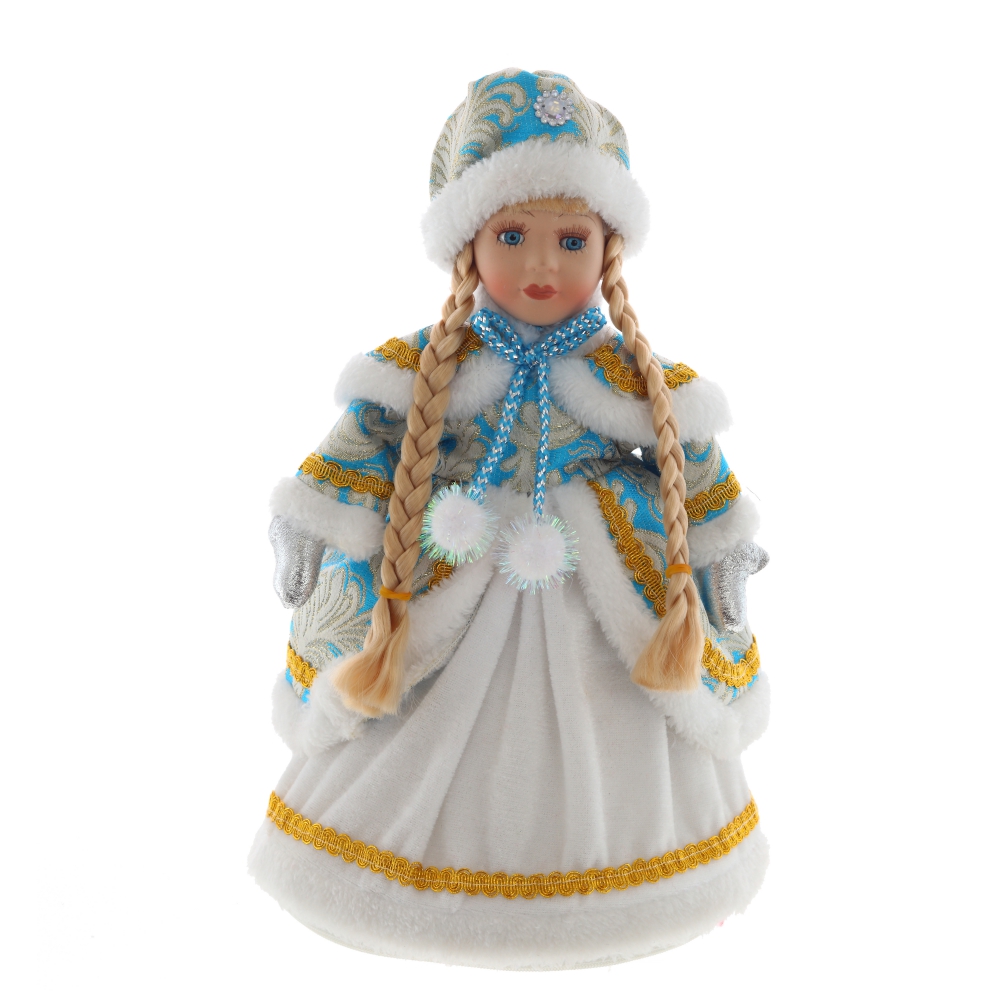 Снегурочка (с ёмкостью д/подарков), l20 w20 h33 см. Материал: Текстиль/Фарфор/Полимерные материалы Прелестная Снегурочка в роскошной голубой шубке с вышивкой и меховой отделкой, с емкостью для подарков. Кукла будет превосходно смотреться под новогодней елочкой и наполнит Ваш дом сказочной атмосферой, исполняя заветные мечты. Вес, кг: 0. 256