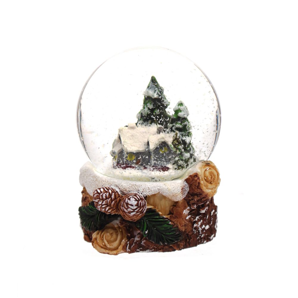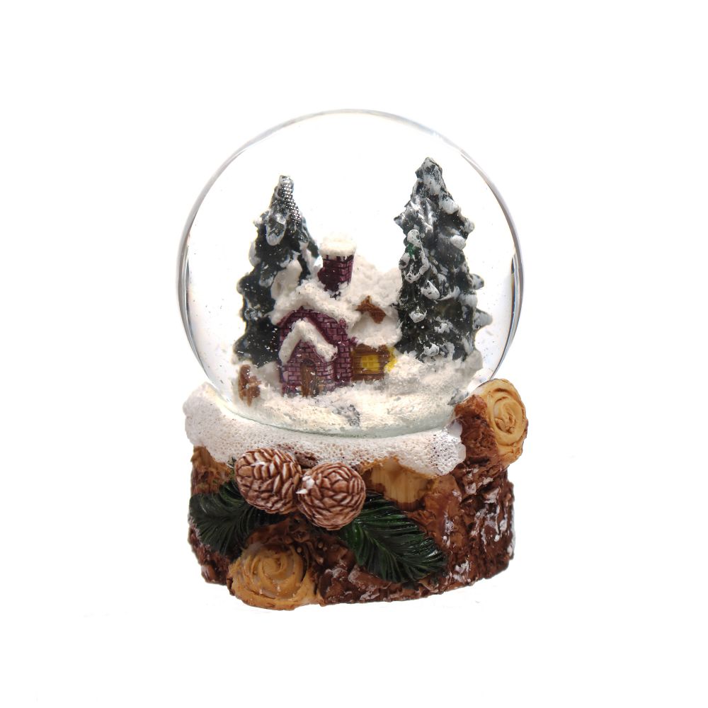 Фигурка декор в стекл шаре домик (подсвет, Lr44x2 н/п), D6 см, L6,5 W7,5 H8 см, 2в.