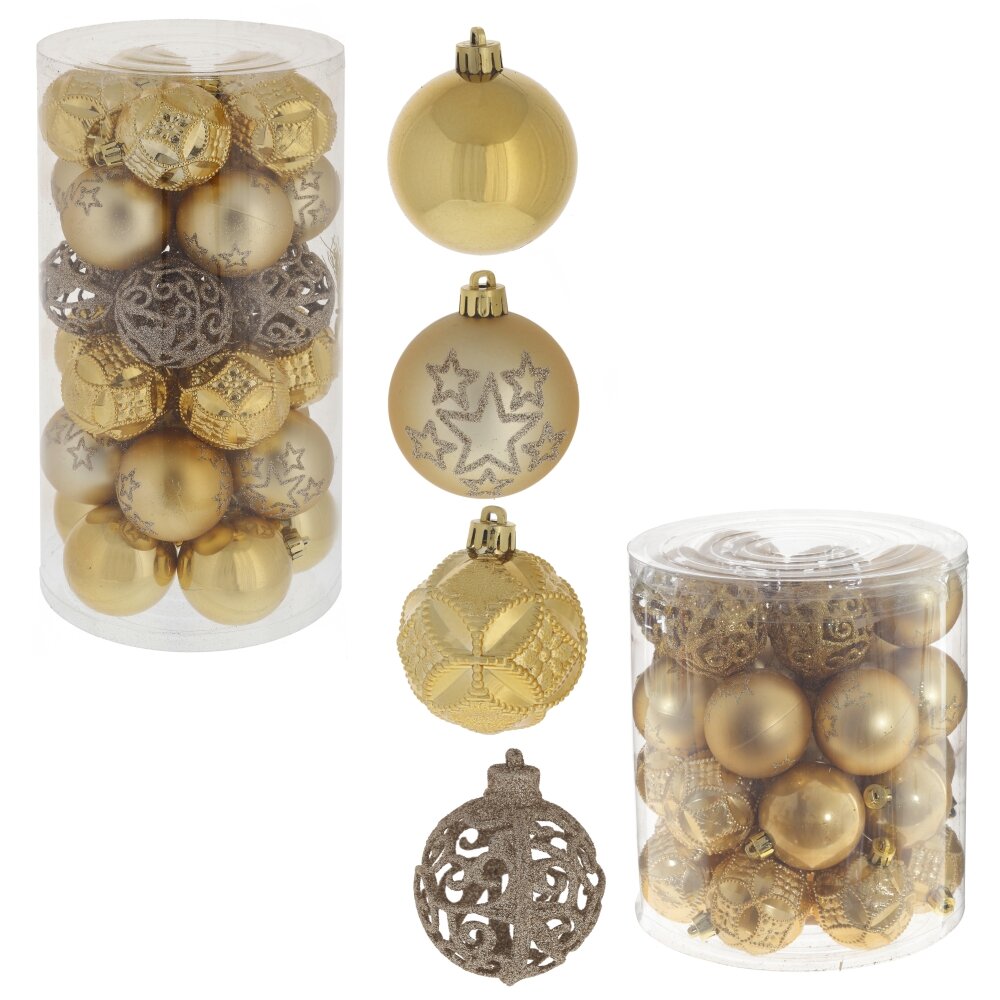 Набор из 30-ти елочных шаров выполнен в единой цветовой гамме. В составе набора - пластиковые шары разной фактуры - глянцевые, матовые, рельефные, ажурные с глиттером. Прекрасно смотрятся в убранстве новогодней ели. Поставляются в прозрачной пластиковой упаковке.