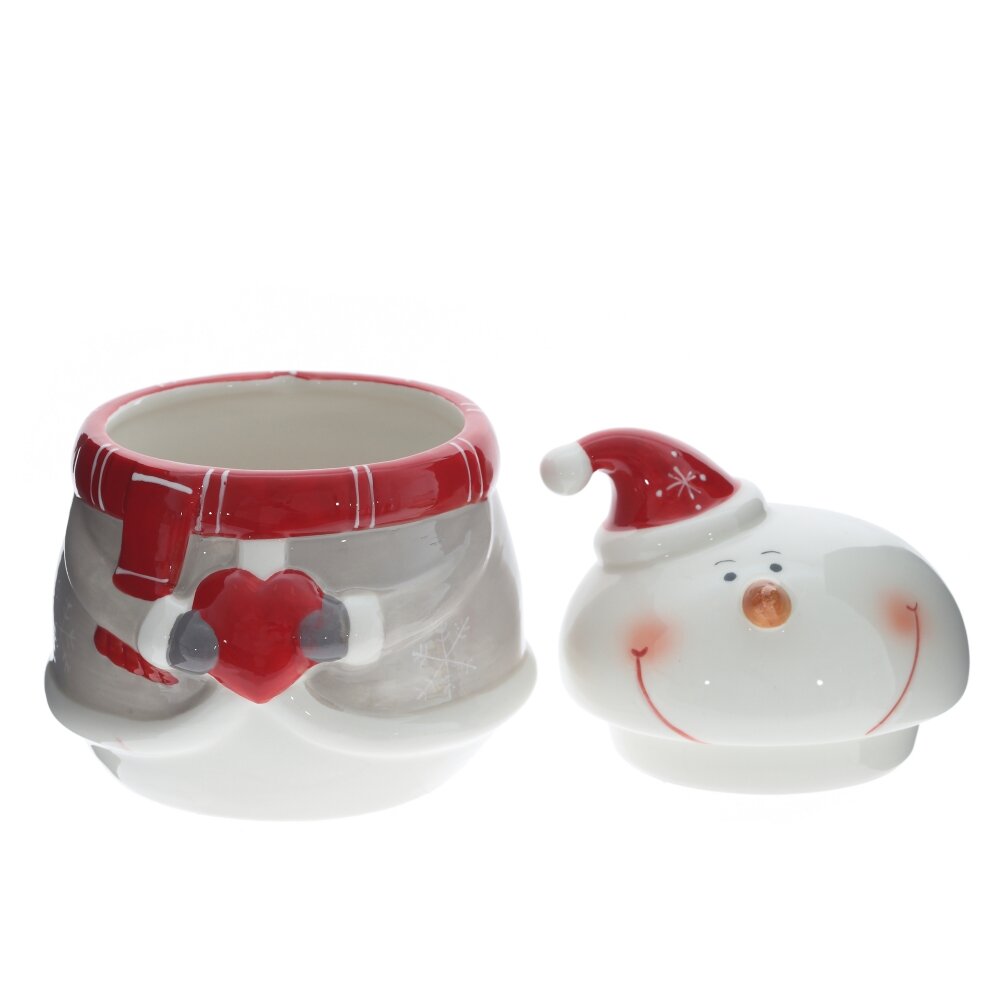 Конфетница керамическая из  коллекции новогодней посуды Веселый снеговик, удачное решение для оформления Вашего Новогоднего стола. Объем: 650 мл, размер: L12 W12 H16 см