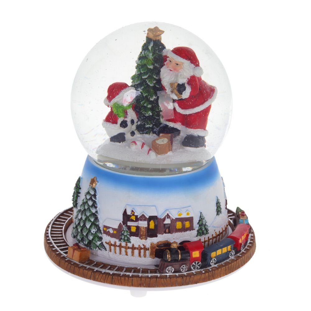 Фигурка декор в стекл шаре дед мороз (муз с ключ, подсветка), D10 см, L14 W14 H16 см