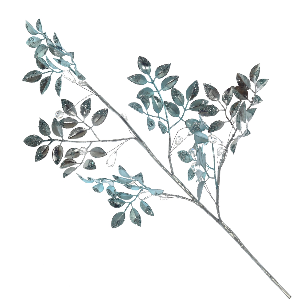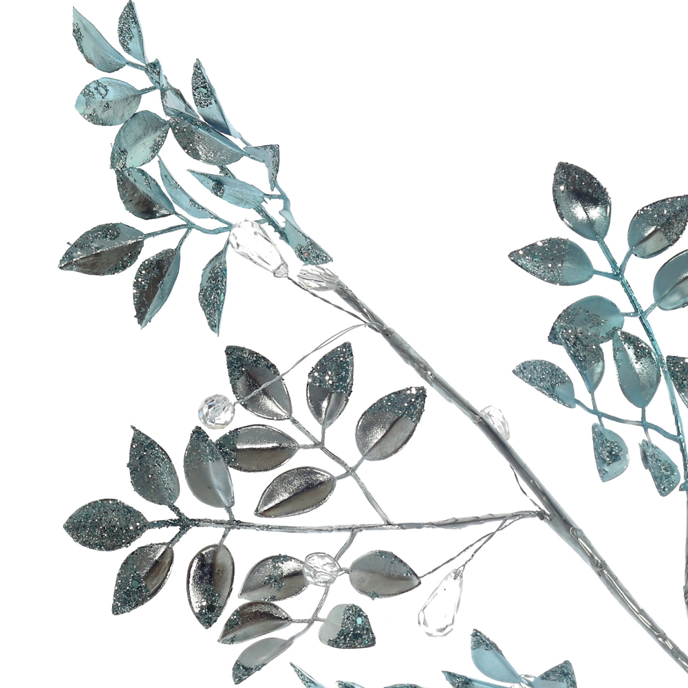Ветка с мерцающими от глитера листьями . Используется для новогоднего и рождественского декорирования дома. Будет прекрасно сочетаться с разными ветками и цветами в интерьерных композициях и на елке.