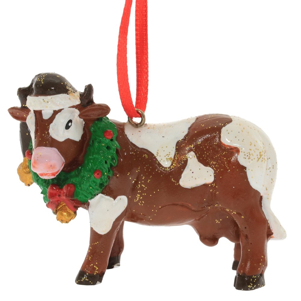 Украшение новогоднее коровка L7 W2 H5 см , 4в.