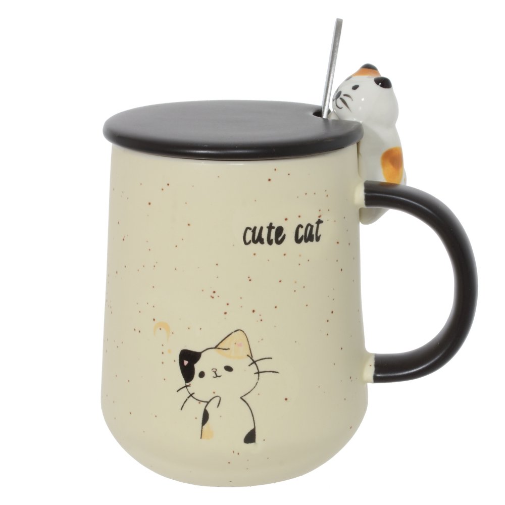 Кружка с крышкой и ложкой, 450 мл, L11,5 W9 H13 см, 4в.