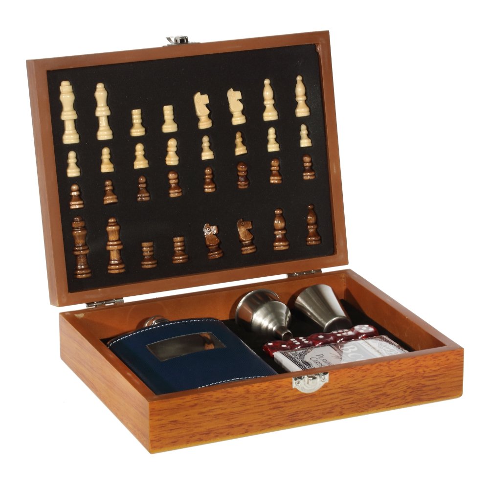 Набор подарочный (шахматы, кубики, карты, фляжка 200 мл, стопка 30 мл, вор