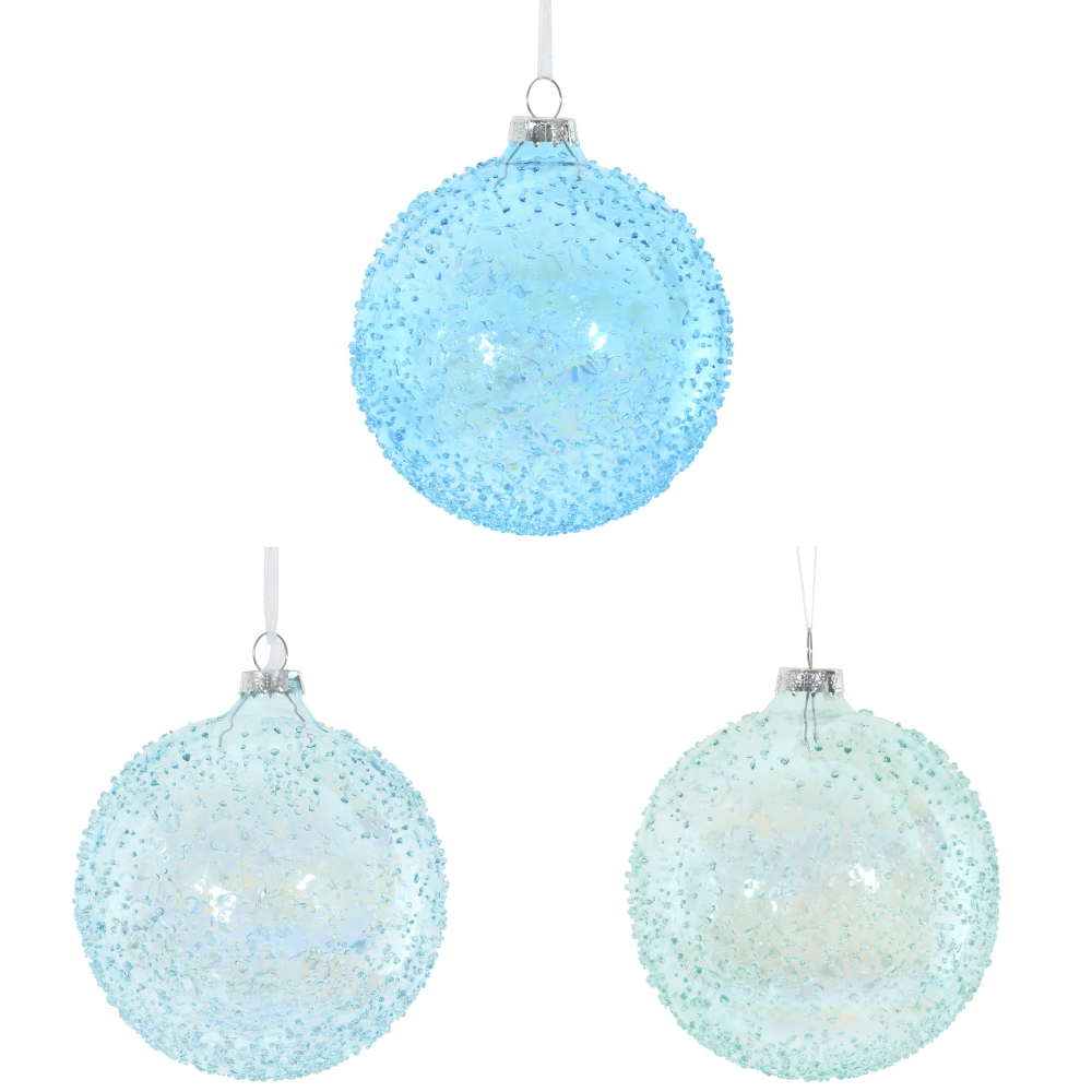 Стеклянный шар с потрясающей фактурой в виде россыпи капель. Это новогоднее украшение непременно порадует вас своим изяществом и прекрасно дополнит праздничный наряд лесной красавицы. Представлено в трех вариантах.