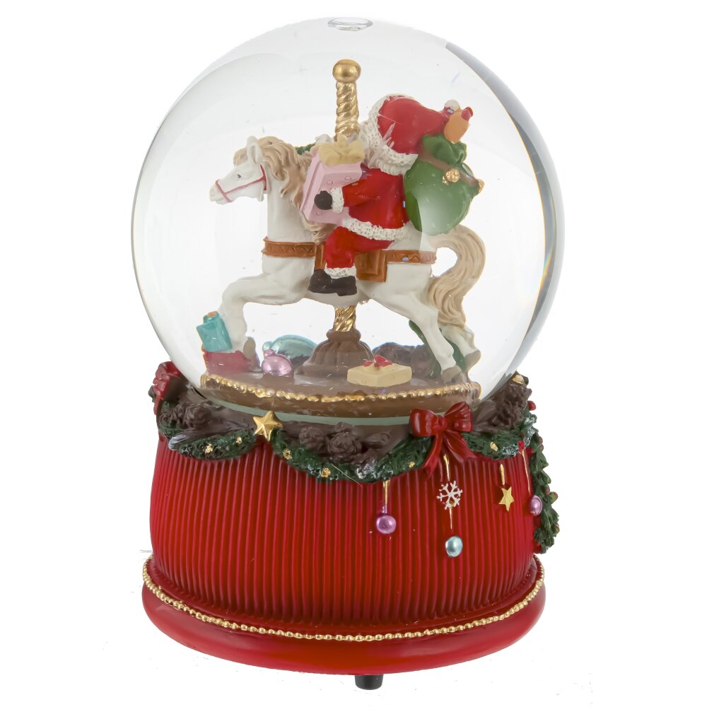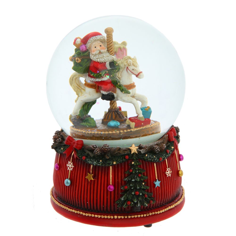 Фигурка декор в стекл шаре дед мороз на лошадке (муз с ключ, движ), D 10 см, L10 W10 H15 см