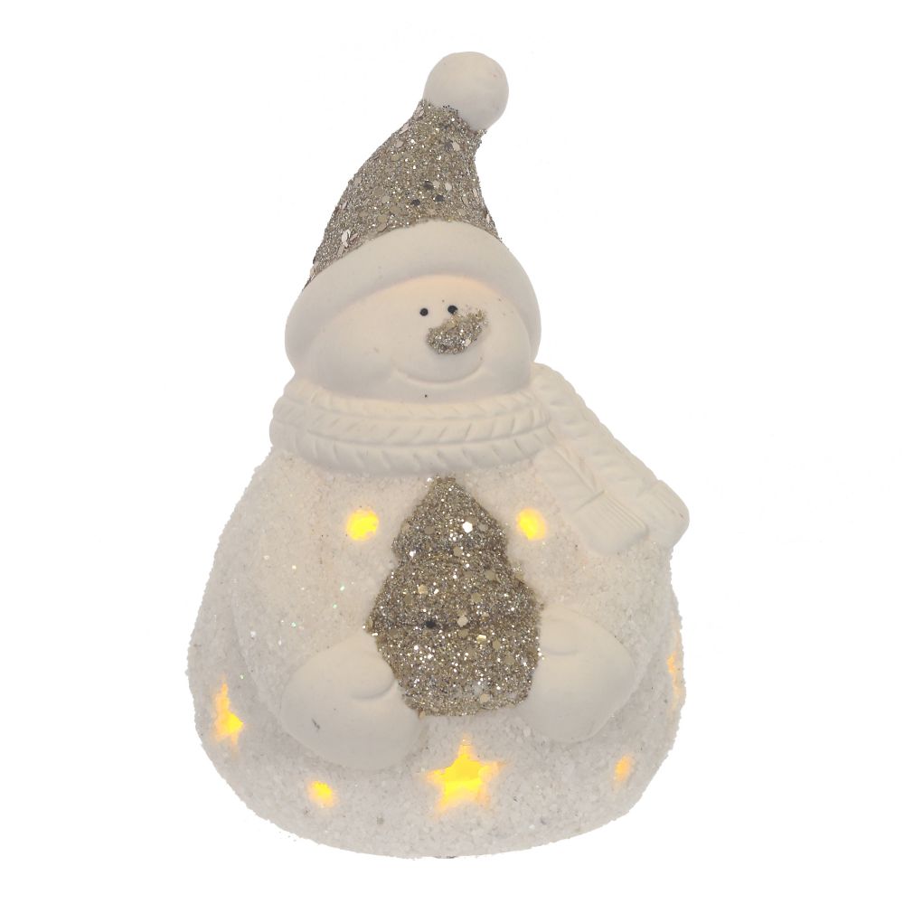 Чудесная фигурка снеговика станет настоящей изюминкой Вашего интерьера. Одним нажатием клавишы на снеговичке зажгутся яркие звёздочки. Фигурка декоративная Снеговик с подсветкой, изготовлена из керамики. Работает от двух батареек LR44. Представлено в двух вариантах.