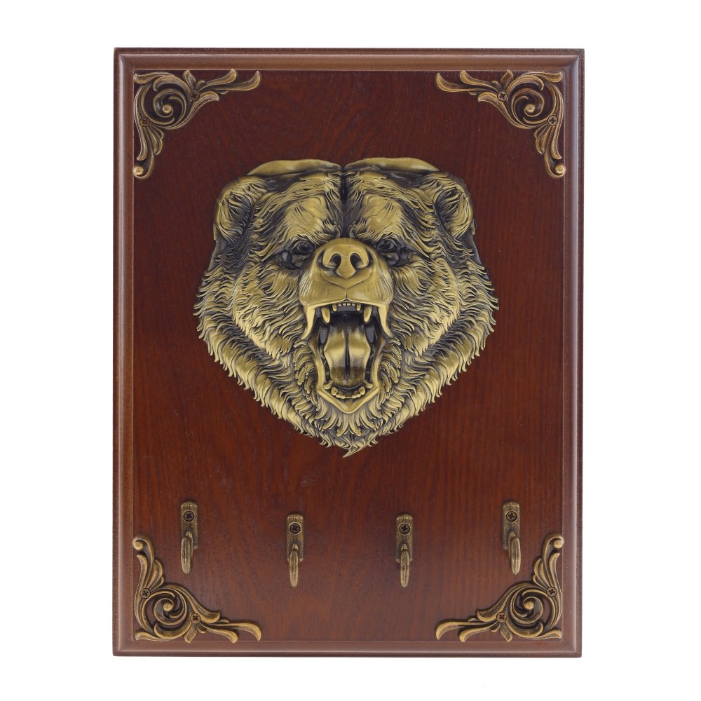 Ключница, l18,5 w3 h24,5 см. Материал: МДФ с натуральным шпоном/Металл Ключница настенная, открытого типа, с четырьмя металлическими крючками и декором в виде медведя и ажурных угловых элементов. Ключница – предмет не только красивый, но и функциональный, поэтому ей найдется место и в офисе, и в квартире, и в загородном доме. Вес, кг: 0. 629