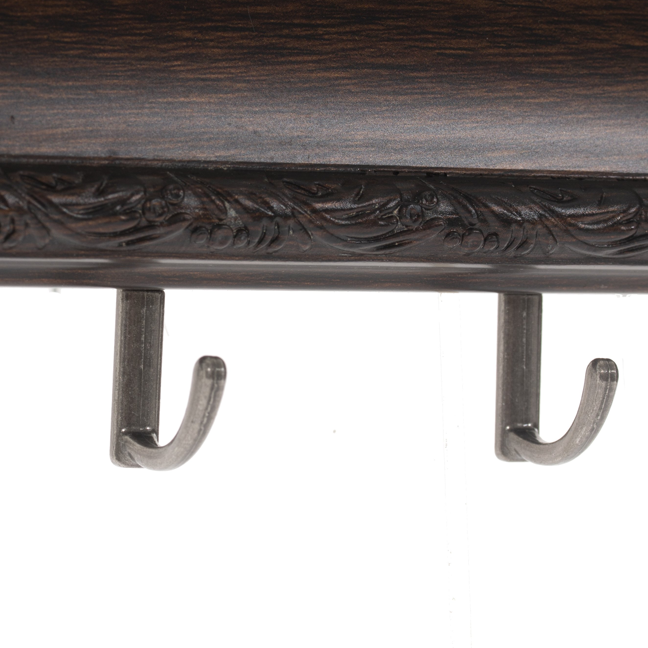 Ключница, l27 w2,5 h29 см. Материал: Полимерные материалы/Металл Ключница открытого типа с четырьмя крючками, изготовлена из пластика. Цвет рамки - коричневый, с металлическим декором в виде ажурных угловых элементов. Крепится на стену с помощью двух металлических петелек. Вес, кг: 0. 465