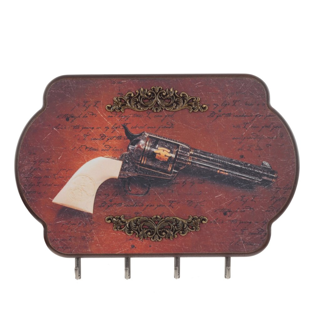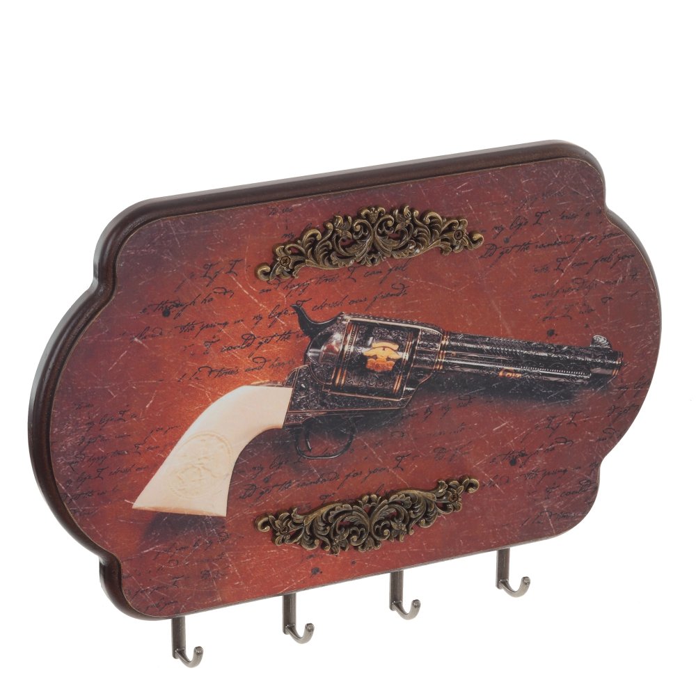 Ключница, l28 w2 h20 см. Материал: МДФ/Металл Ключница открытого типа с четырьмя крючками. Украшена изображением оружия и декоративными ажурными металлическими элементам. Ключница – предмет не только красивый, но и функциональный, поэтому ей найдется место и в квартире, и в загородном доме. Вес, кг: 0. 487