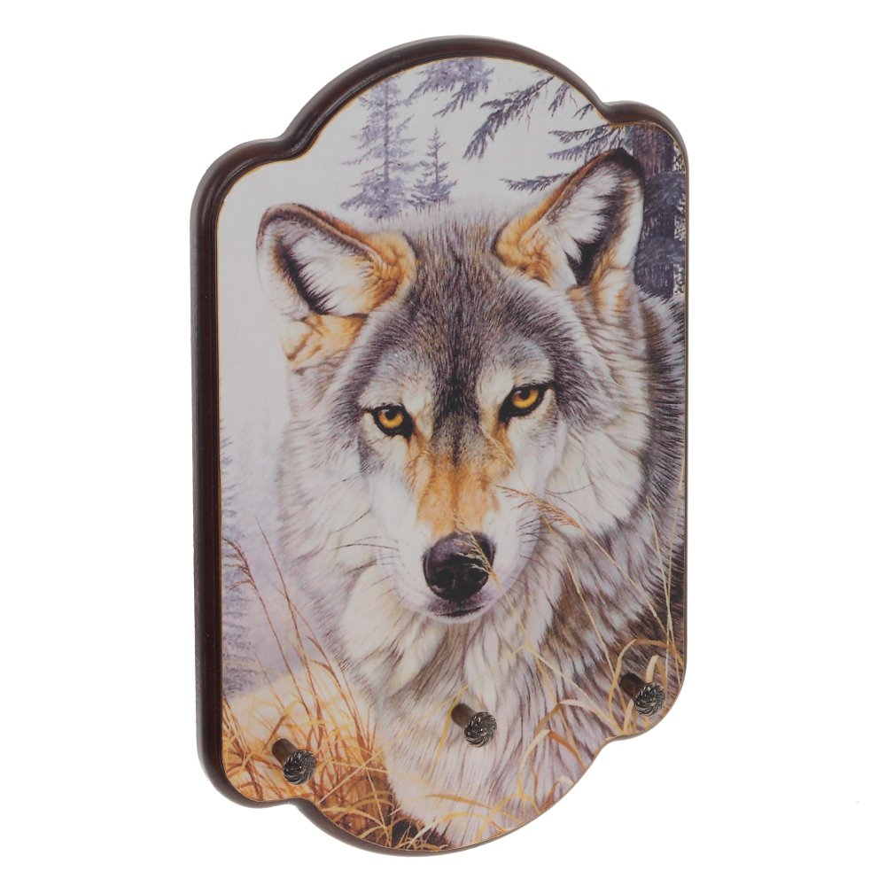 Ключница, l18 w3 h28 см. Материал: МДФ/Металл Ключница открытого типа с тремя крючками. Украшена изображением волка. Ключница – предмет не только красивый, но и функциональный, поэтому ей найдется место и в квартире, и в загородном доме. Вес, кг: 0. 484