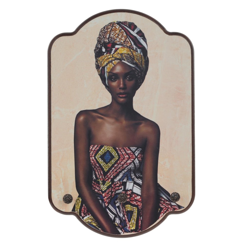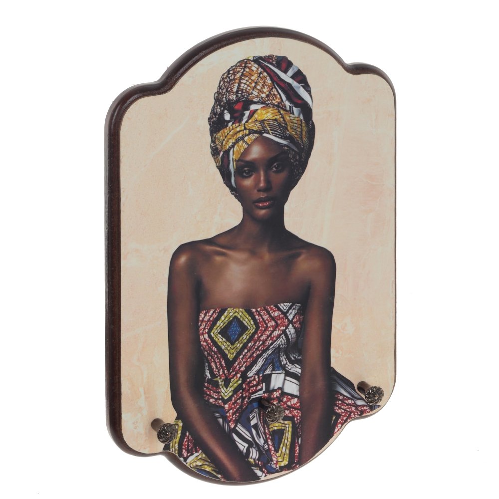 Ключница, l18 w3 h28 см. Материал: МДФ/Металл Ключница открытого типа с тремя крючками. Украшена изображением темнокожей красавицы. Ключница – предмет не только красивый, но и функциональный, поэтому ей найдется место и в квартире, и в загородном доме. Вес, кг: 0. 486