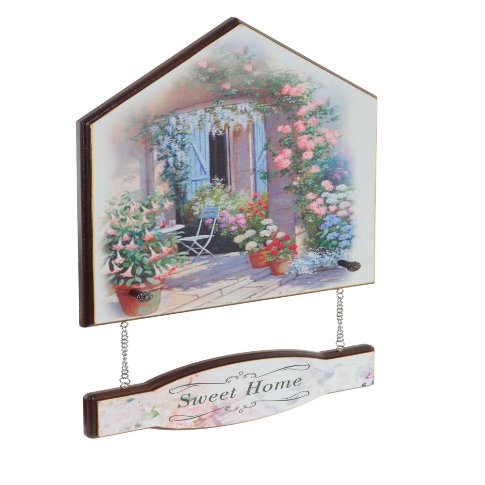Ключница, l24 w3 h46 см. Материал: МДФ/Металл Ключница в форме домика открытого типа с двумя крючками. Украшена цветочным декором и подвеской с надписью Sweet home . Ключница – предмет не только красивый, но и функциональный, поэтому ей найдется место и в квартире, и в загородном доме. Вес, кг: 0. 805