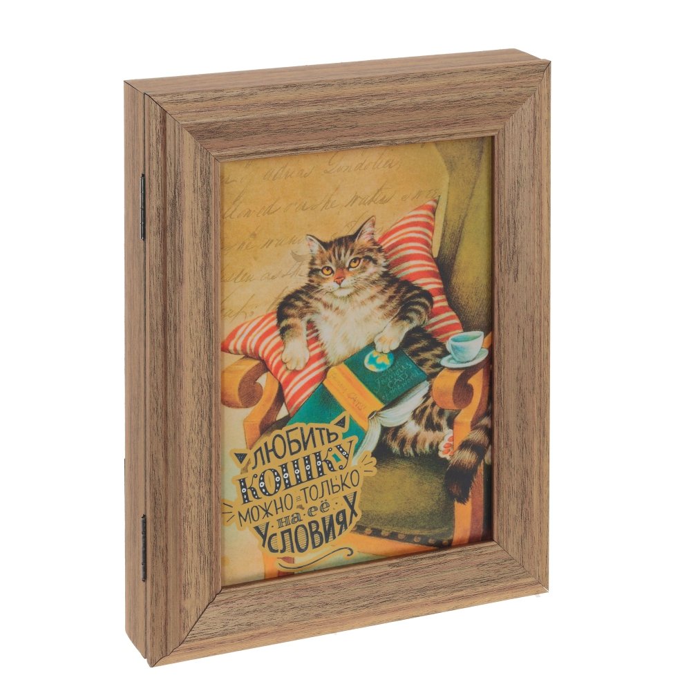 Ключница, l22 w5 h28 см. Материал: Полимерные материалы/Металл Стильная ключница для современного интерьера. Ключница закрытого типа с пятью крючками. Дверца с изображением милой кошечки. Закрывается сбоку на магнит. Ключница – предмет не только красивый, но и функциональный, поэтому ей найдется место и в офисе, и в квартире, и в загородном доме. Вес, кг: 0. 804