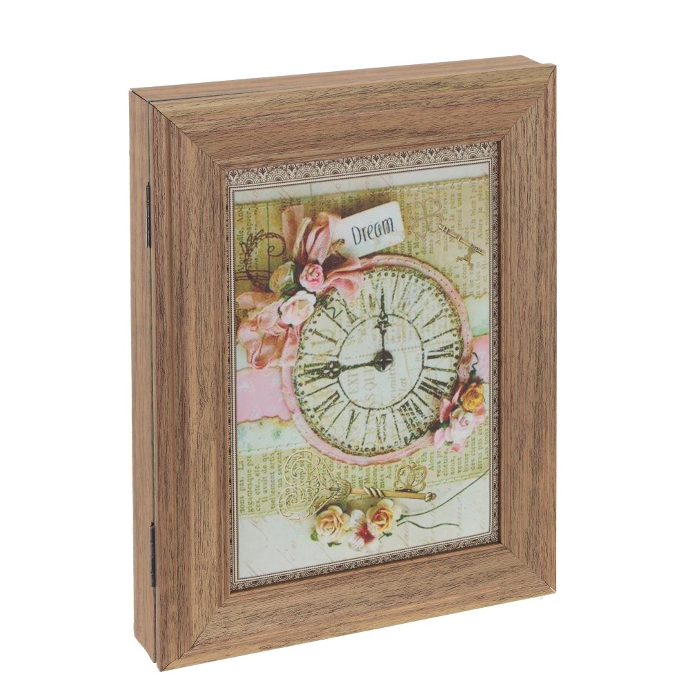 Ключница, l22 w5 h28 см. Материал: МДФ/Полимерные материалы/Металл Стильная ключница для современного интерьера. Ключница закрытого типа с пятью крючками. Дверца с изображением часов. Закрывается сбоку на магнит. Ключница – предмет не только красивый, но и функциональный, поэтому ей найдется место и в офисе, и в квартире, и в загородном доме. Вес, кг: 0. 798