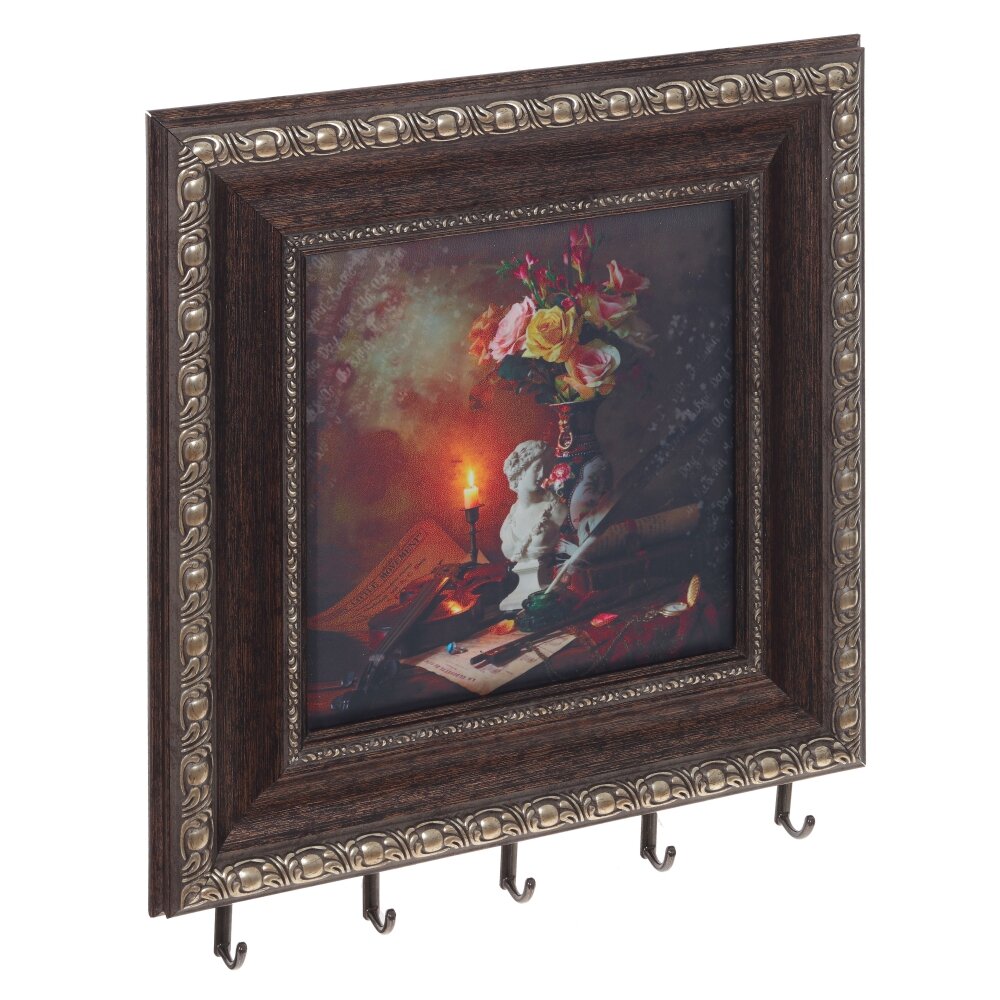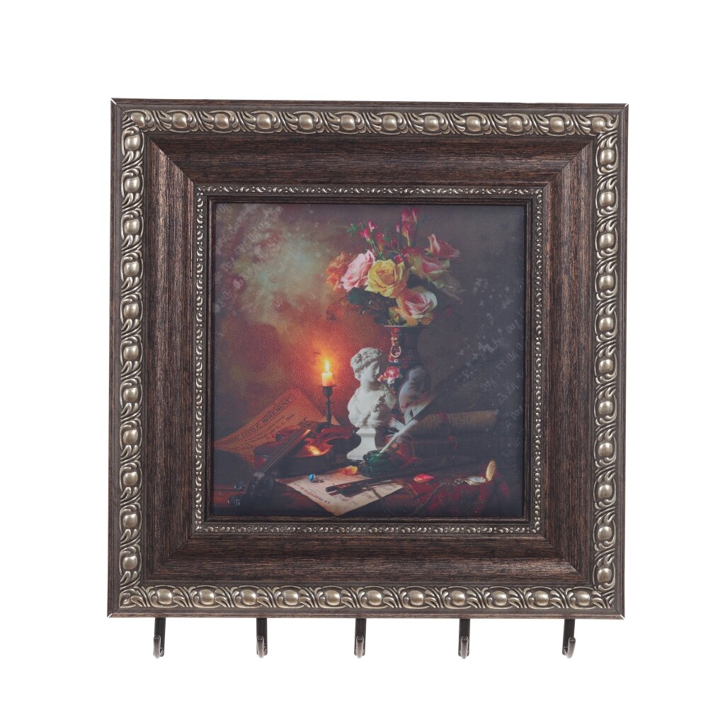 Ключница, l27 w3 h29 см. Материал: Дерево/Полимерные материалы/Металл Ключница настенная открытого типа в багетной раме с пятью металлическими крючками, украшенная рисунком. Ключница – предмет не только красивый, но и функциональный, поэтому ей найдется место и в офисе, и в квартире, и в загородном доме. На задней стенке ключницы есть крепления для подвешивания на вертикальную поверхность. Вес, кг: 0. 508