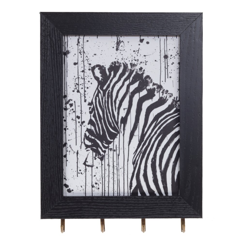Ключница, l22 w3 h30 см. Материал: Дерево/Полимерные материалы/Металл Ключница открытого типа с четырьмя крючками. Украшена изображением зебры. Ключница – предмет не только красивый, но и функциональный, поэтому ей найдется место и в квартире, и в загородном доме. Вес, кг: 0. 578