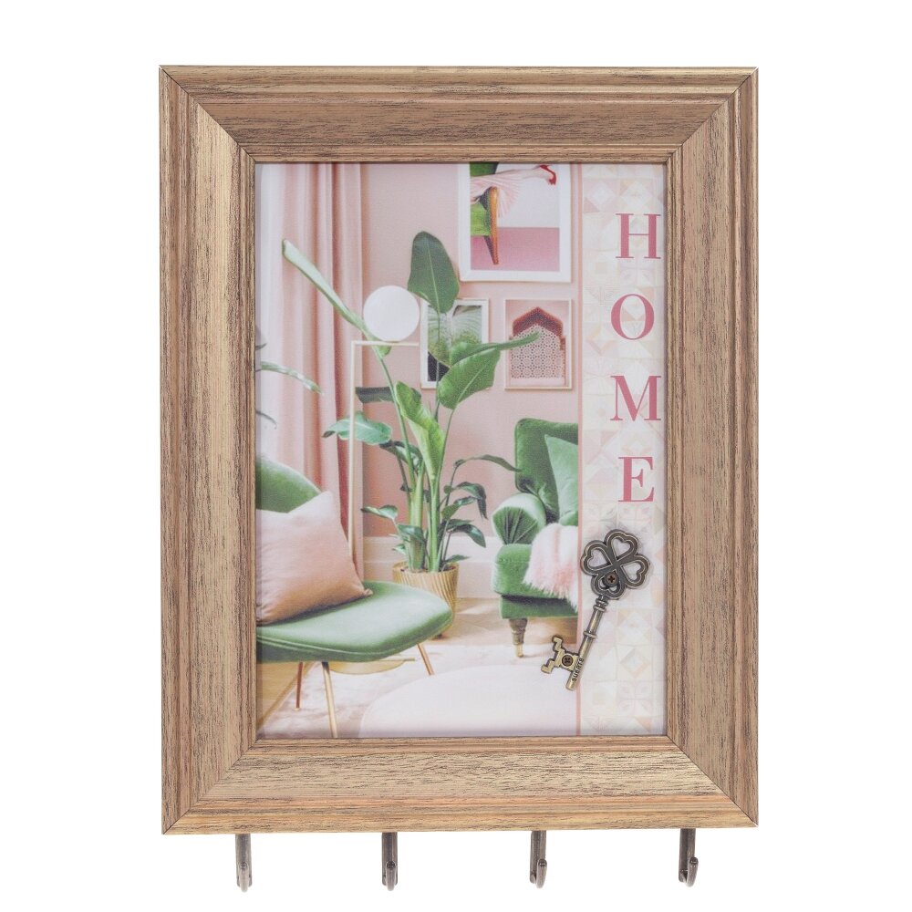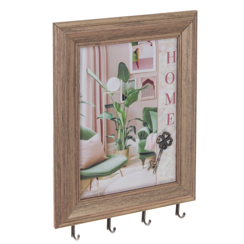 Ключница, l22 w2,5 h30 см. Материал: Дерево/Полимерные материалы/Металл Ключница настенная открытого типа в багетной раме с четырьмя металлическими крючками, украшенная ярким рисунком. Ключница – предмет не только красивый, но и функциональный, поэтому ей найдется место и в офисе, и в квартире, и в загородном доме. На задней стенке ключницы есть крепления для подвешивания на вертикальную поверхность. Вес, кг: 0. 39