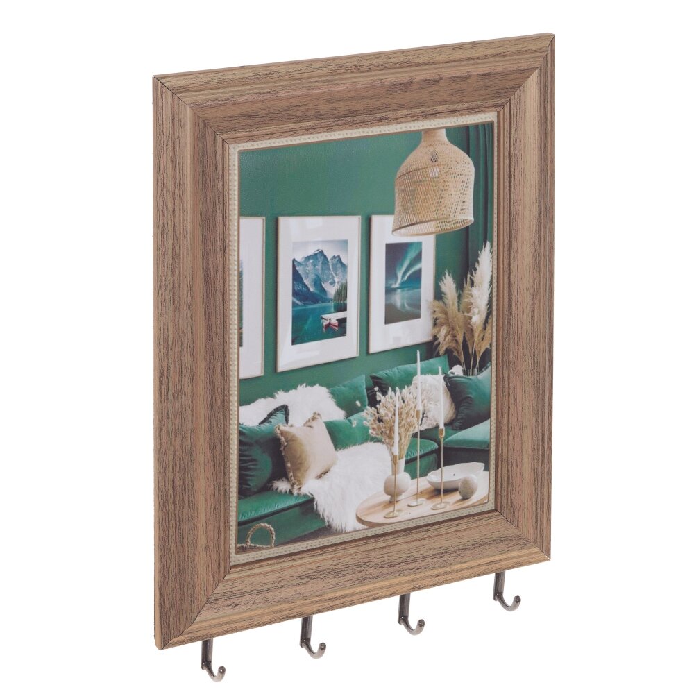 Ключница, l22 w2,5 h30 см. Материал: Дерево/Полимерные материалы/Металл Эта оригинальная деревянная настенная ключница открытого типа с четырьмя крючками станет не только стильным украшением вашего интерьера, но и оберегом для вашего дома и сохранять все хорошее в нем. Этот аксессуар станет прекрасным подарком для вас и ваших близких. На задней стенке ключницы есть крепления для подвешивания на вертикальную поверхность. Вес, кг: 0. 361