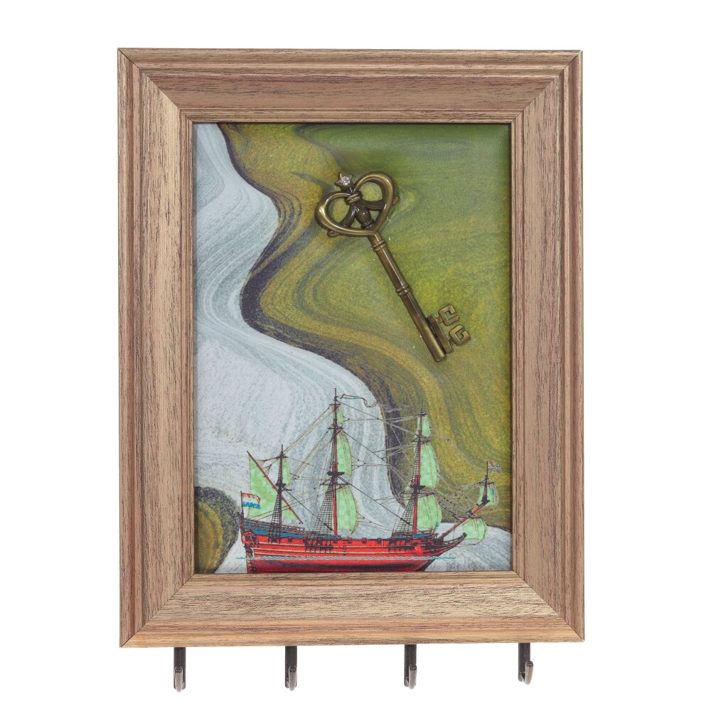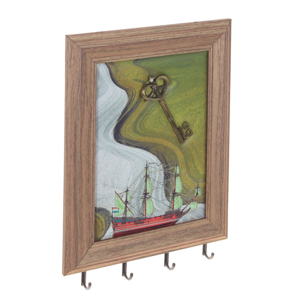 Ключница настенная открытого типа в багетной раме с четырьмя металлическими крючками, декорированная ярким изображением и декоративным металлическим элементом в виде ключа. Ключница – предмет не только красивый, но и функциональный, поэтому ей найдется место и в офисе, и в квартире, и в загородном доме. На задней стенке ключницы есть крепления для подвешивания на вертикальную поверхность.