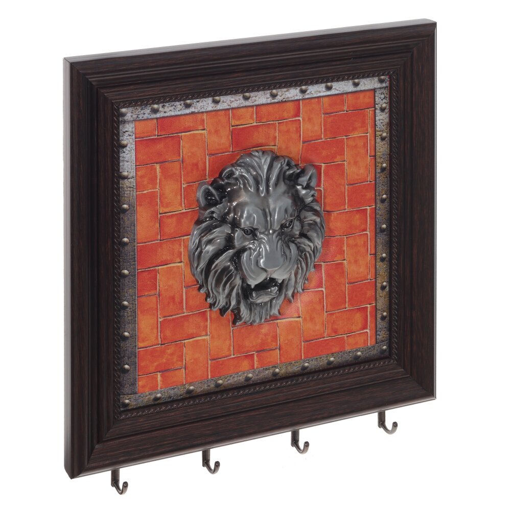 Ключница, l27 w2,5 h29 см. Материал: Дерево/Полимерные материалы/Металл Ключница настенная открытого типа в багетной раме с четырьмя металлическими крючками, декорированная металлической головой льва. Ключница – предмет не только красивый, но и функциональный, поэтому ей найдется место и в офисе, и в квартире, и в загородном доме. На задней стенке ключницы есть крепления для подвешивания на вертикальную поверхность. Вес, кг: 0. 582