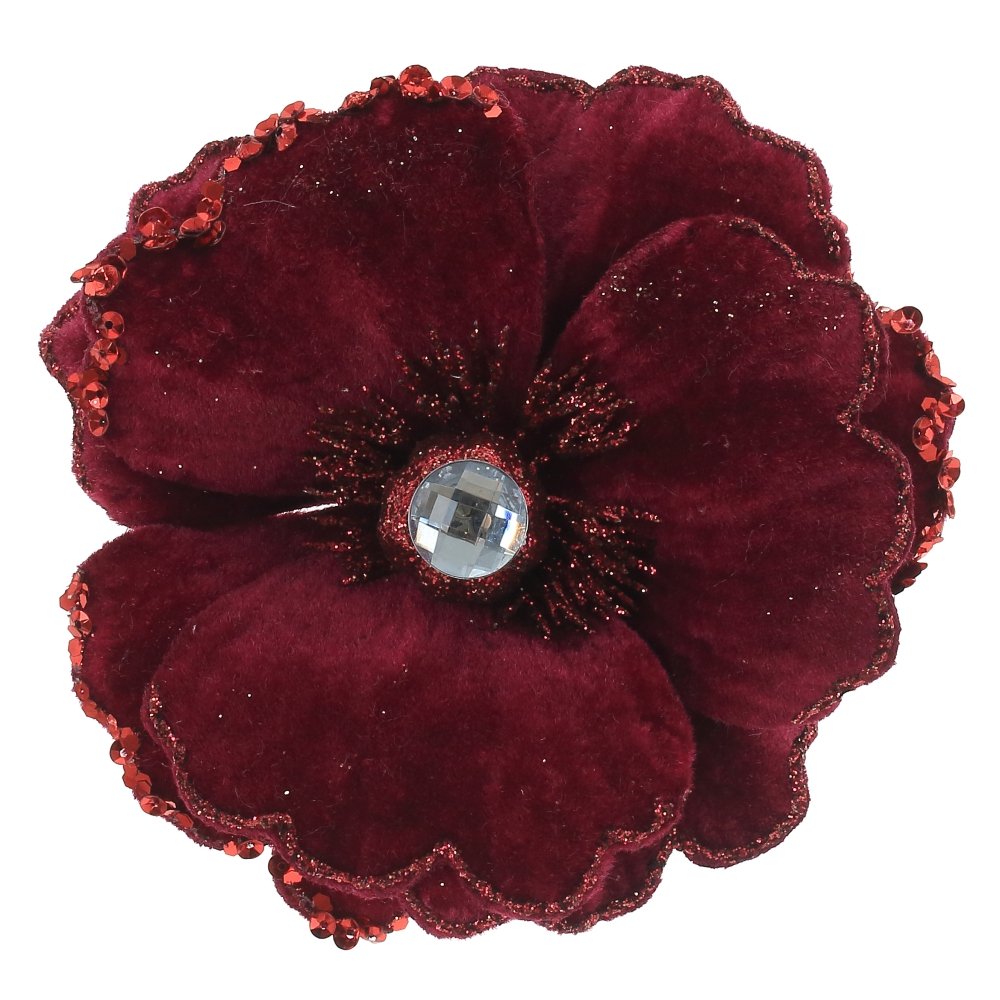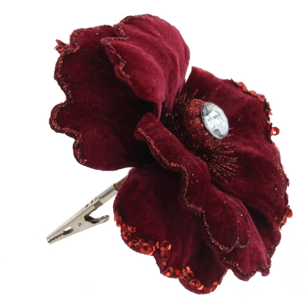 Объемный цветок с бархатными лепестками , с декором из блесток и красивой сердцевинкой. Прекрасное украшение для новогодней елки и флористических композиций.